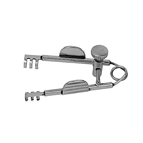 Spring Action With Screw Lock, 3 X 3 Semi Sharp Prongs. Size 6 Mm Blades, Spread 30 Mm, Overall Length 44 Mm.